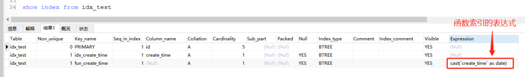 函数索引就是给字段加了函数的索引,这里的函数也可以是表达式。所以也叫表达式索引。