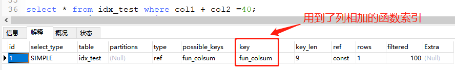 alter table idx_test add index fun_colsum( (col1 + col2) );