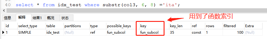 alter table idx_test add index fun_subcol( (substr(col3, 6, 8)) );