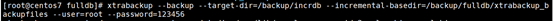 xtrabackup --defaults-file=/etc/my.cnf --user=root --password=123456 --backup--target-dir=/backup/incrdb --incremental-basedir=/backup/fulldb/xtabackup_backuofiles