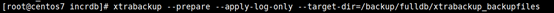 Xtrabackup --prepare --apply-log-only --target-dir=/backup/fulldb/xtrabackup_backupfiles
