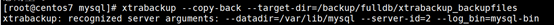 --target-dir:备份文件的目录,默认为当前目录xtrabackup_backupfiles/;