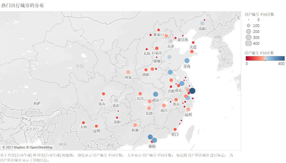 热门出行城市的分布