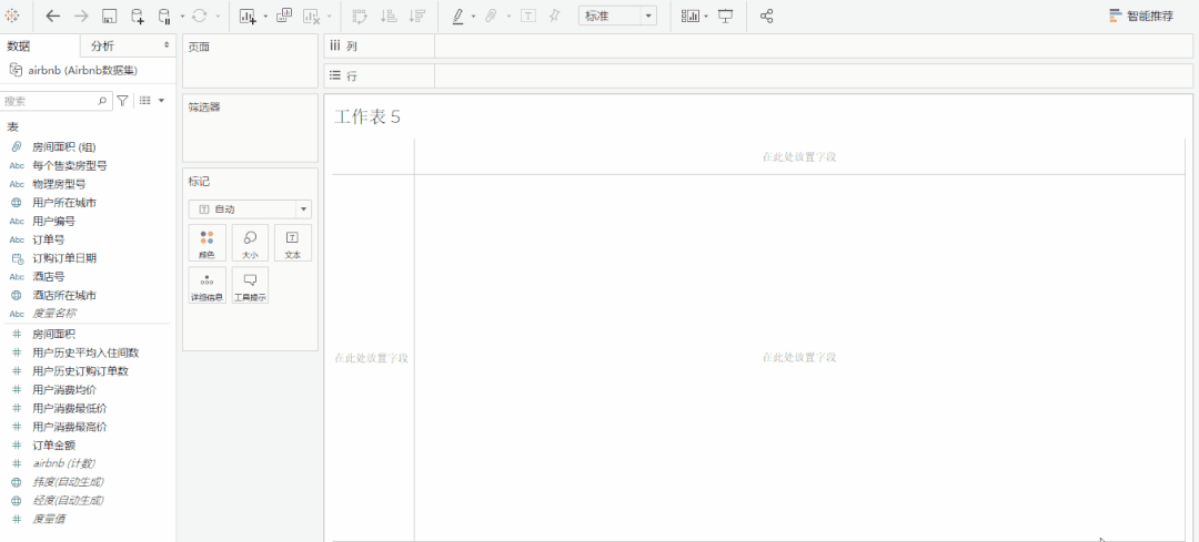 先设置【数值型变量】的数据类型为【地理角色】 将地理角色拖拽至【详细信息】,城市会显示成点图,省份会显示为填色图 将你要在地图上展示的度量拖拽至颜色或大小 空值可以忽略或者搜索经纬度进行填充 顶部工具栏中的【地图】选项可以对你生成的地图进行设置