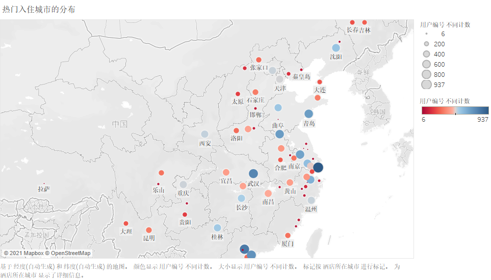 热门入住城市的分布