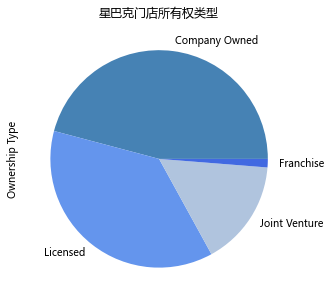 在数据集中有Ownership Type这个指标,我们可以看看星巴克门店都有哪些经营类型
