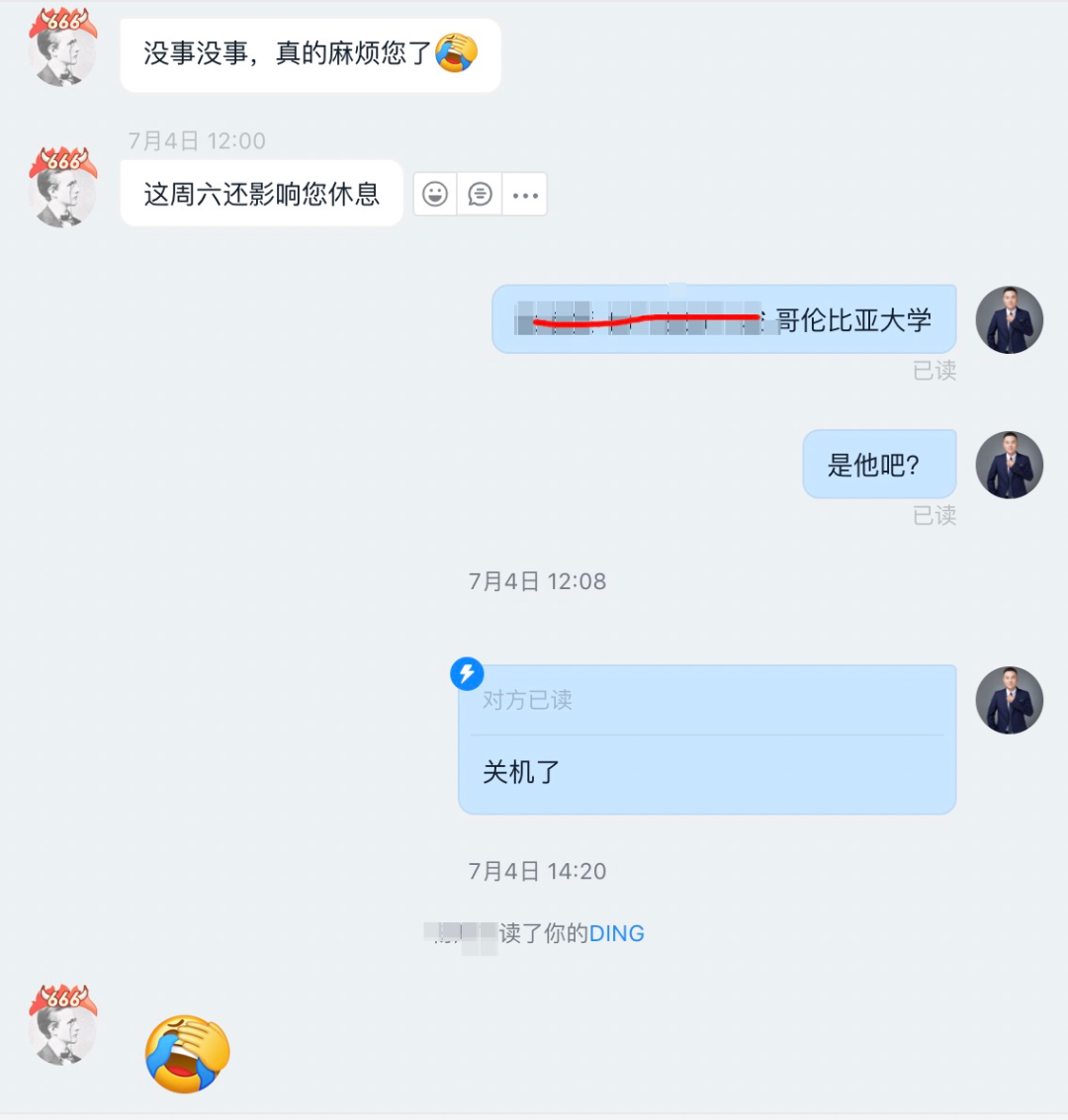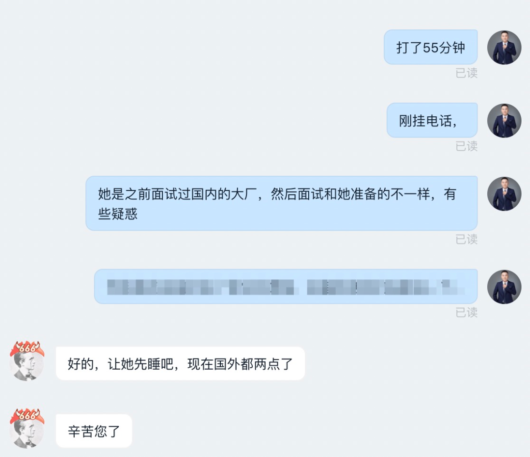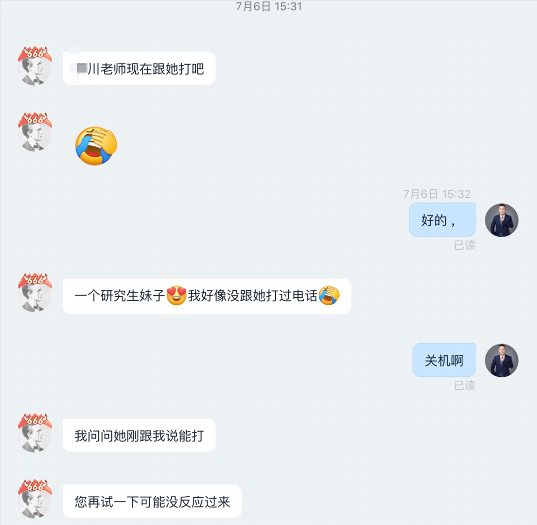 7月初的时候这位同学与我们取得联系,主要是目前就读的专业和未来的就业有些疑惑,因此想要寻求一些职业方向上的指导,中间还发生了一些小插曲,由于该同学在美国和国内有12个小时左右的时差,我们下午3点,她那边是凌晨3点。与留学海外的女同学深夜打电话,发生了啥.......😍。没啥,就是关机了,没打通😂