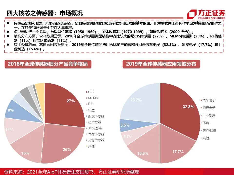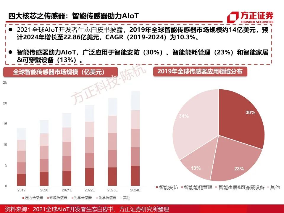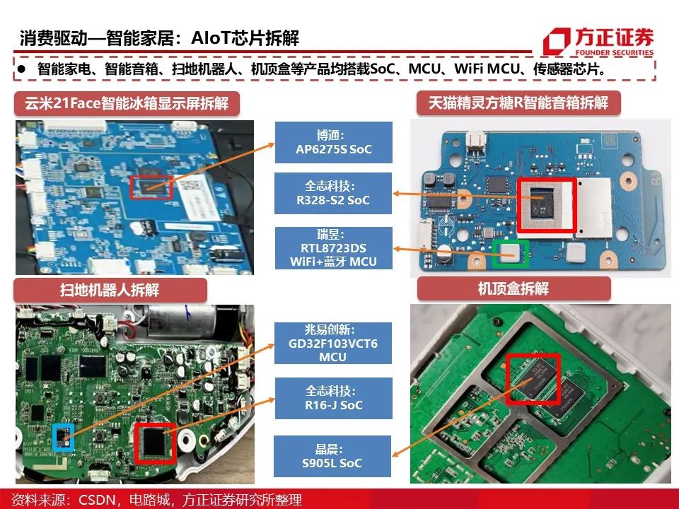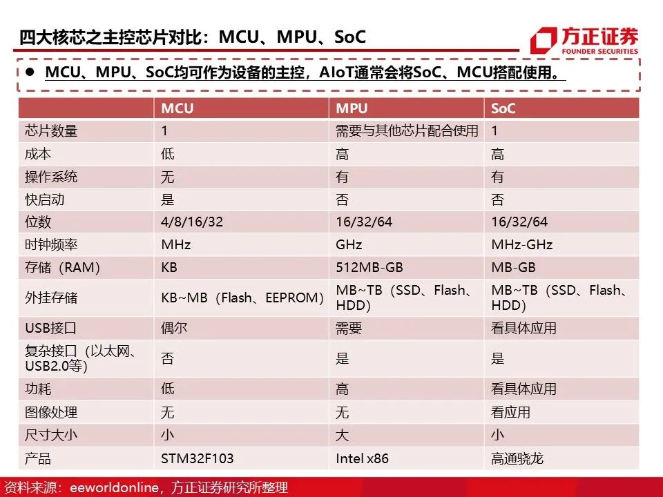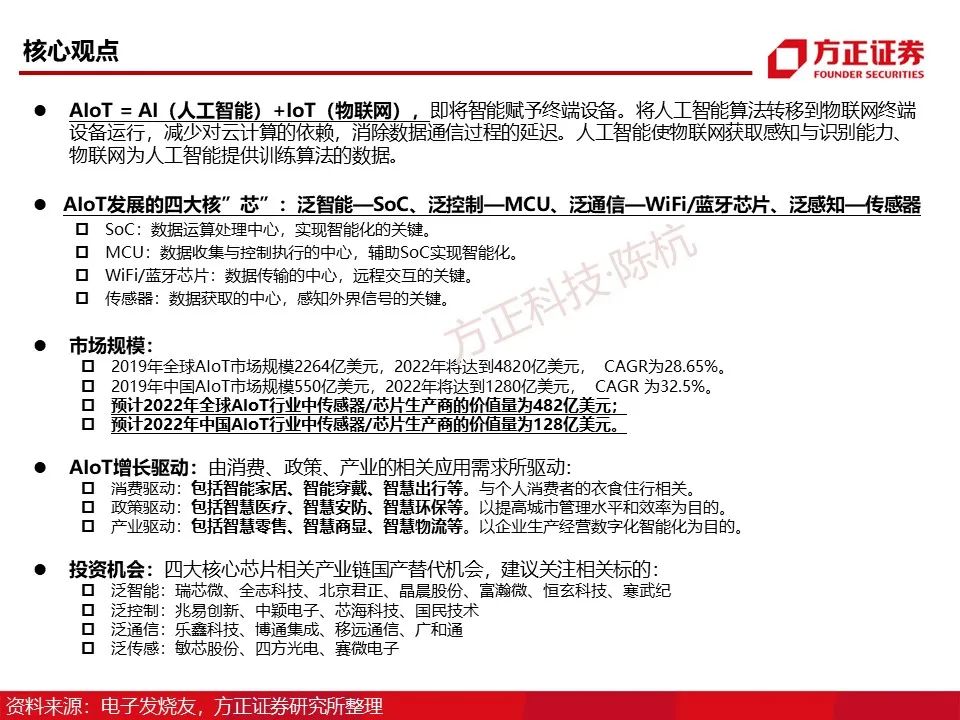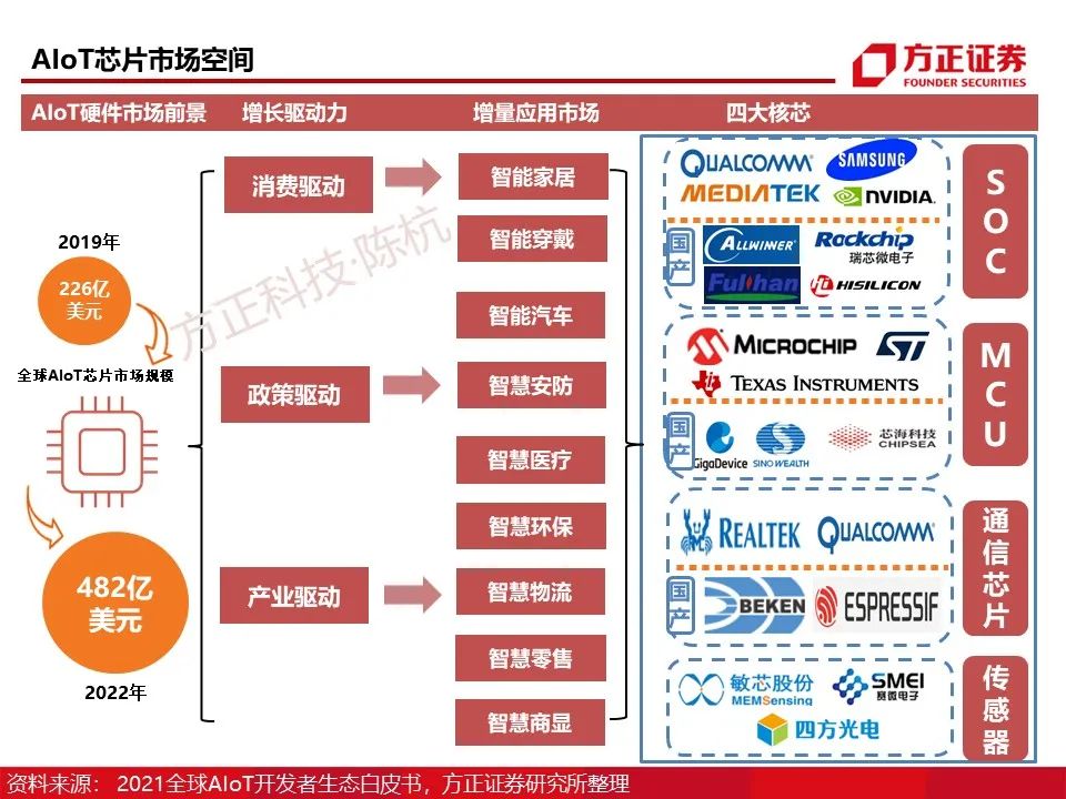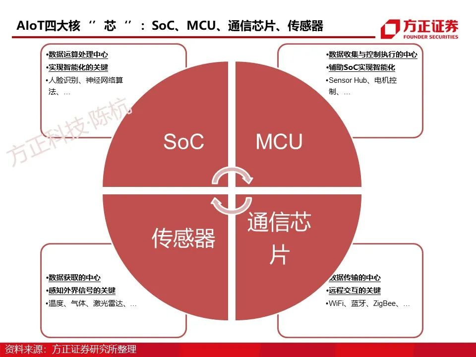 2. AIoT发展的四大核”芯”:泛智能—SoC、泛控制—MCU、泛通信—WiFi/蓝牙芯片、泛感知—传感器: