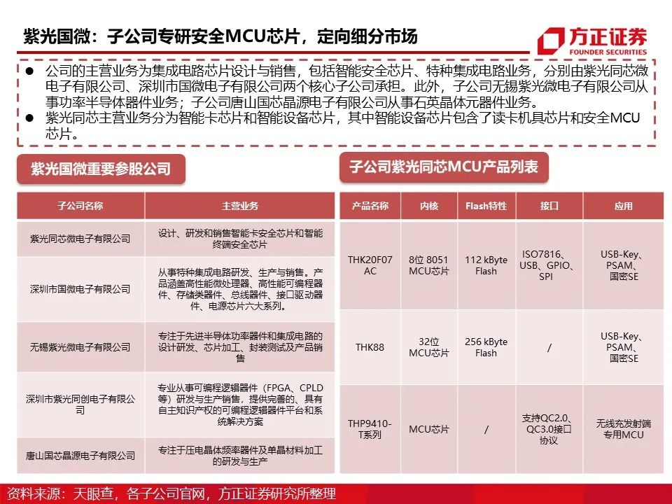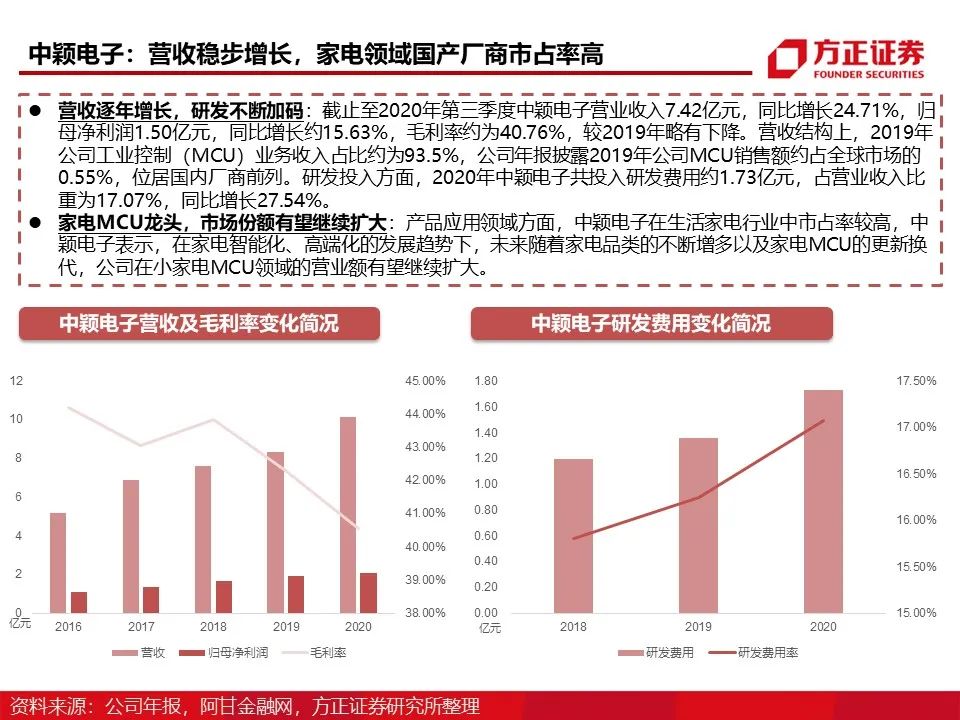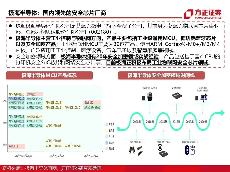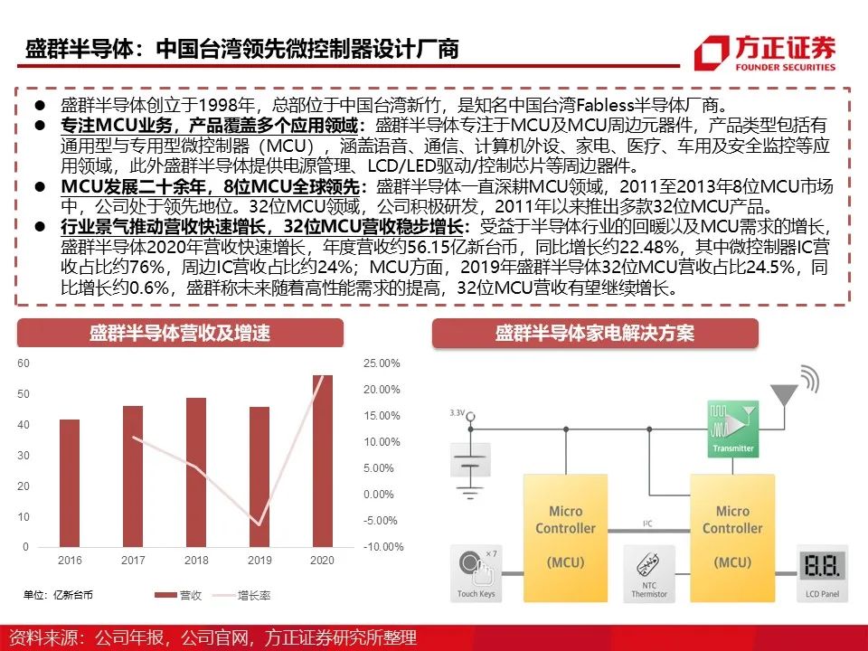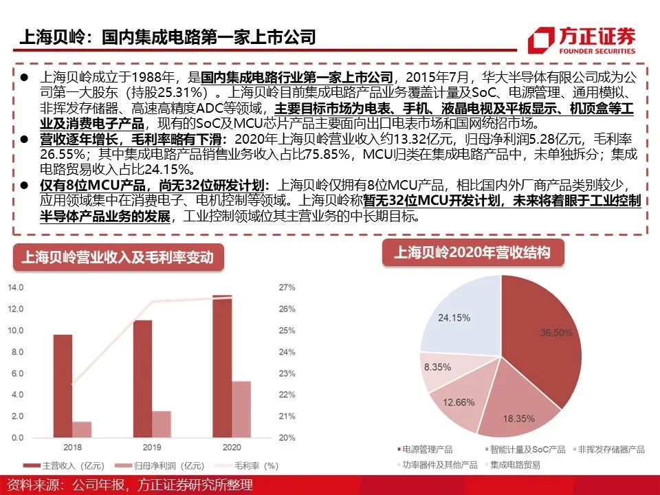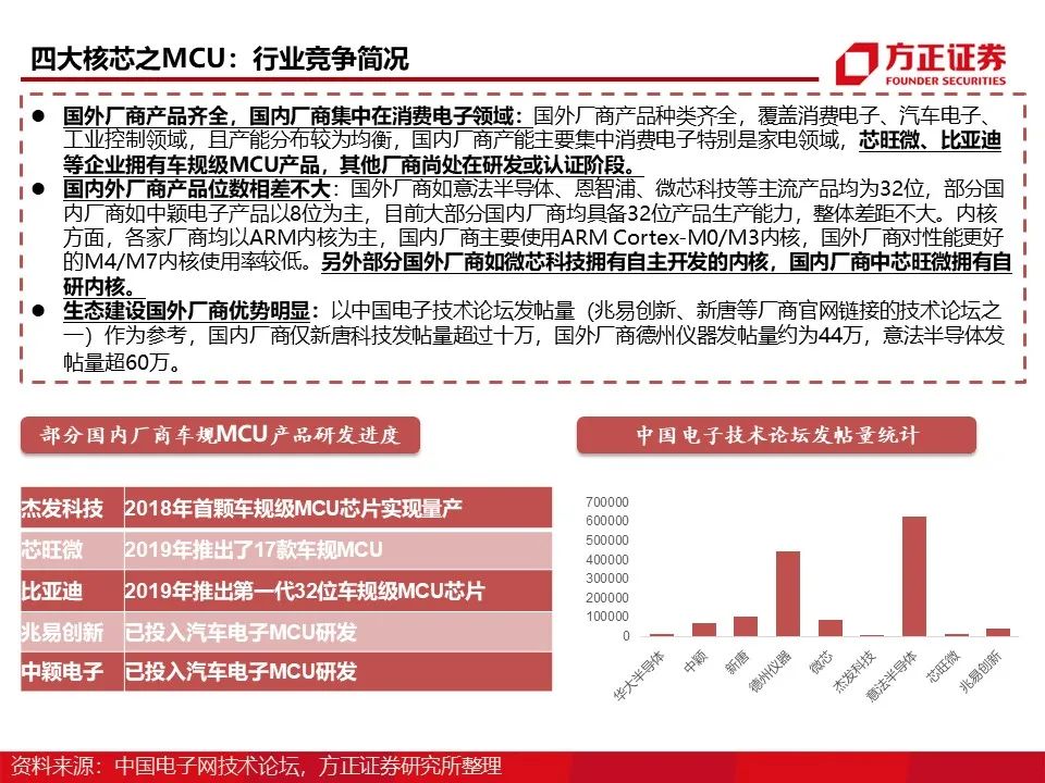 MCU:数据收集与控制执行的中心,辅助SoC实现智能化。MCU又称微控制器或单片机,是把CPU的频率与规格做适当缩减,并将内存(Memory)、计数器(Timer)、USB、A/D转换、UART、PLC、DMA等周边接口,甚至LCD驱动电路都整合在单一芯片上,形成芯片级计算机。