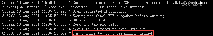 注意:如果以redis用户启动,那么最好切换到redis有权限访问的目录,然后执行上面shell命令。否则会遇到“Can't chdir to './': Permission denied”这类错误