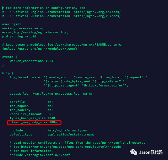 你可以通过nginx定义最大主体大小,上传到服务器的大小为100m。