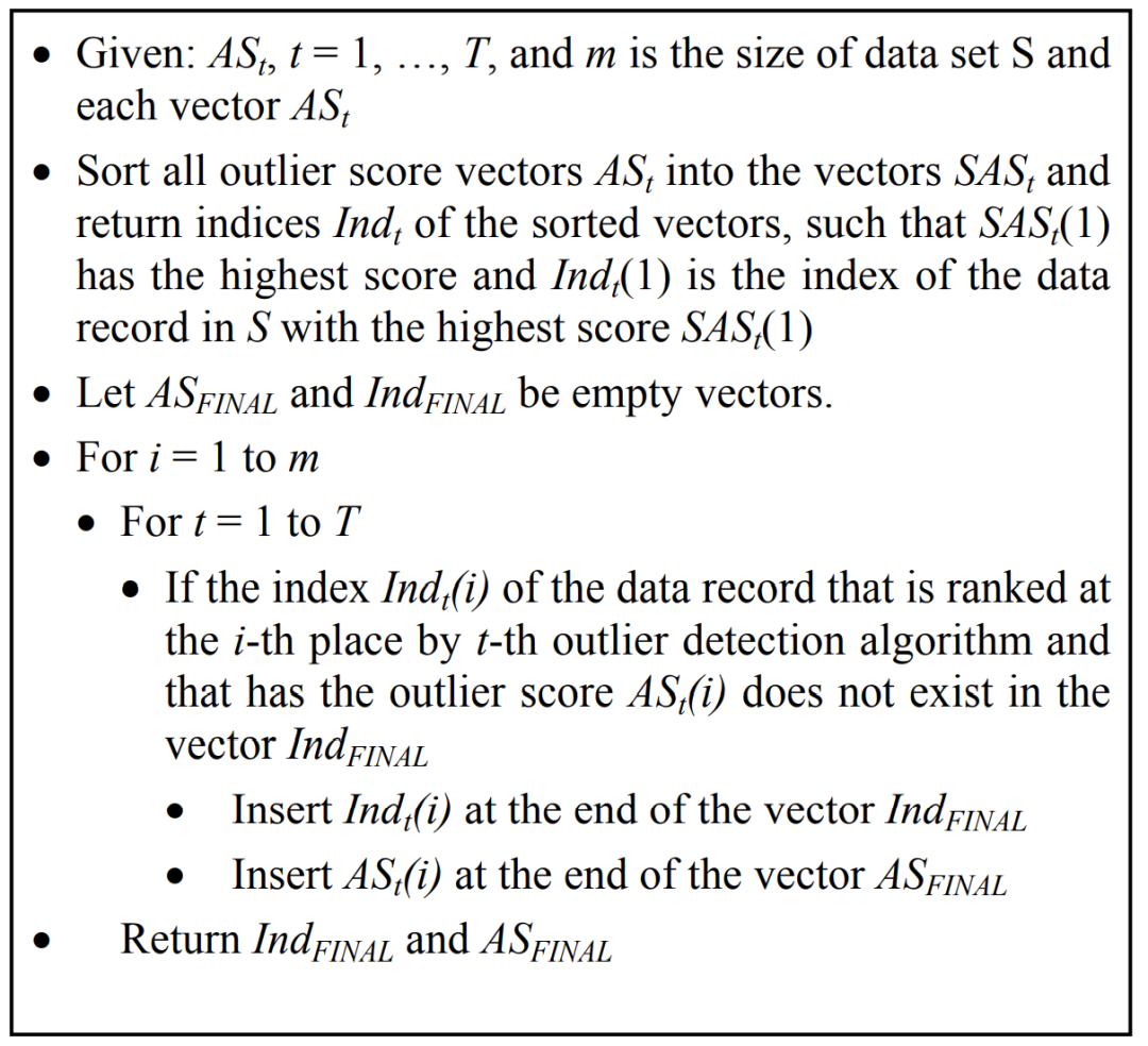 重要的是要注意,此方法类似于在对排名进行汇总的元搜索引擎中的排名方法,但是它更加灵活,因为在排名方法中,可能无法在最终决策中检测到由单个算法检测到的异常值,尤其是在其他检测算法将其排名较低的情况下。