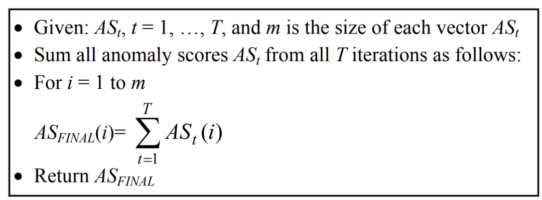该组合方法首先通过对所有次迭代中的所有离群值向量求和来创建最终离群值向量,然后对向量进行排序,最后将离群值最高的数据记录识别为离群值。