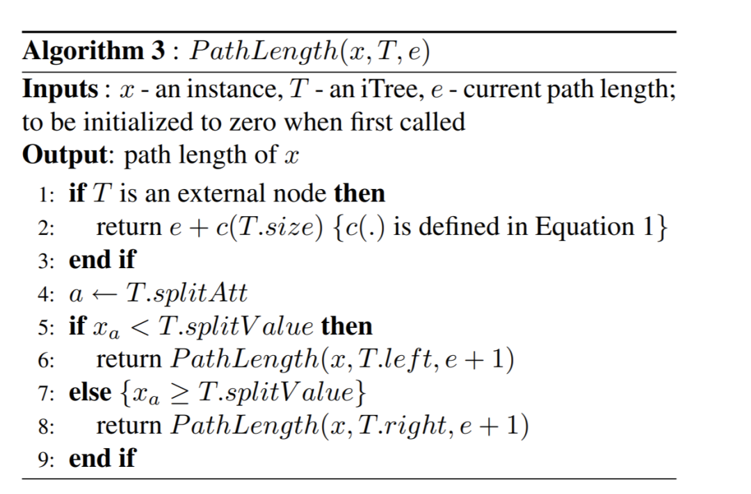获得棵树之后,孤立森林的训练就结束,就可以用生成的孤立森林来评估测试数据。