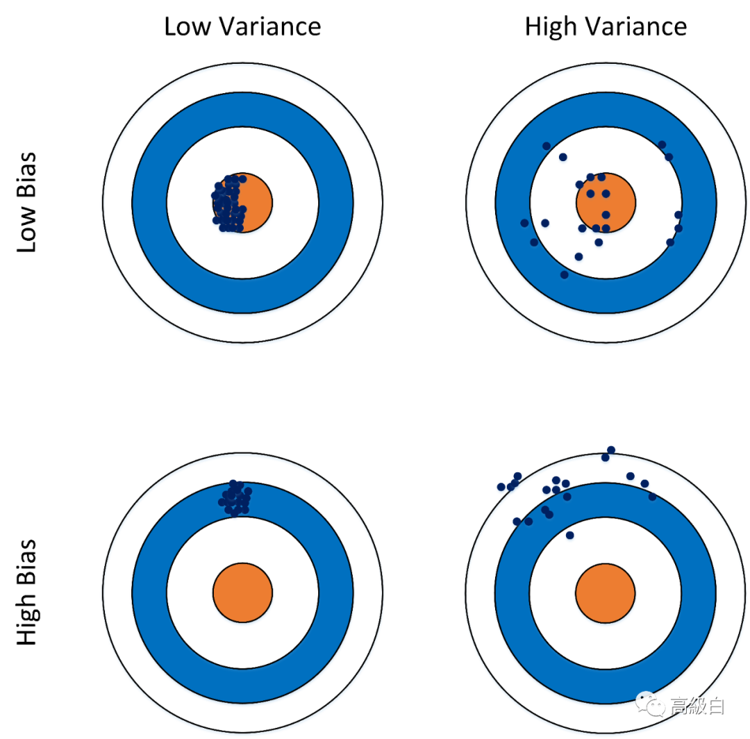 偏差: 描述的是预测值(估计值)的期望与真实值之间的差距。偏差越大,越偏离真实数据。