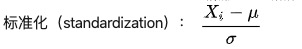标准化:就是将训练集中某一列数值特征(假设是第i列)的值缩放成均值为0,方差为1的状态