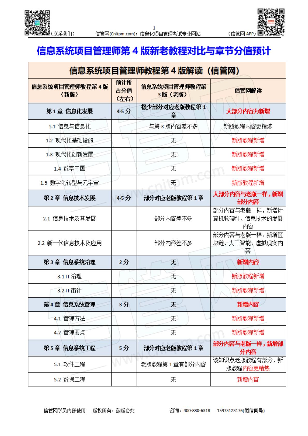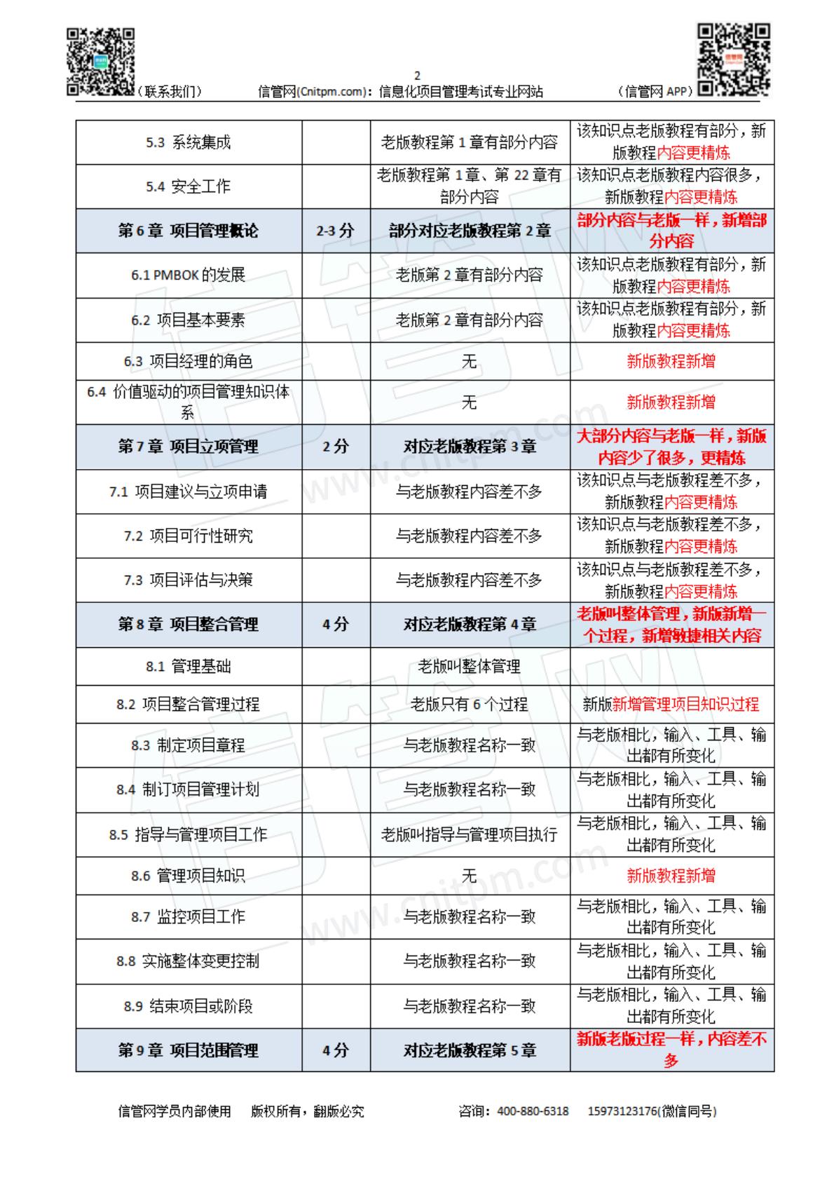 高项第4版新老教程对比与章节分值预计.pdf