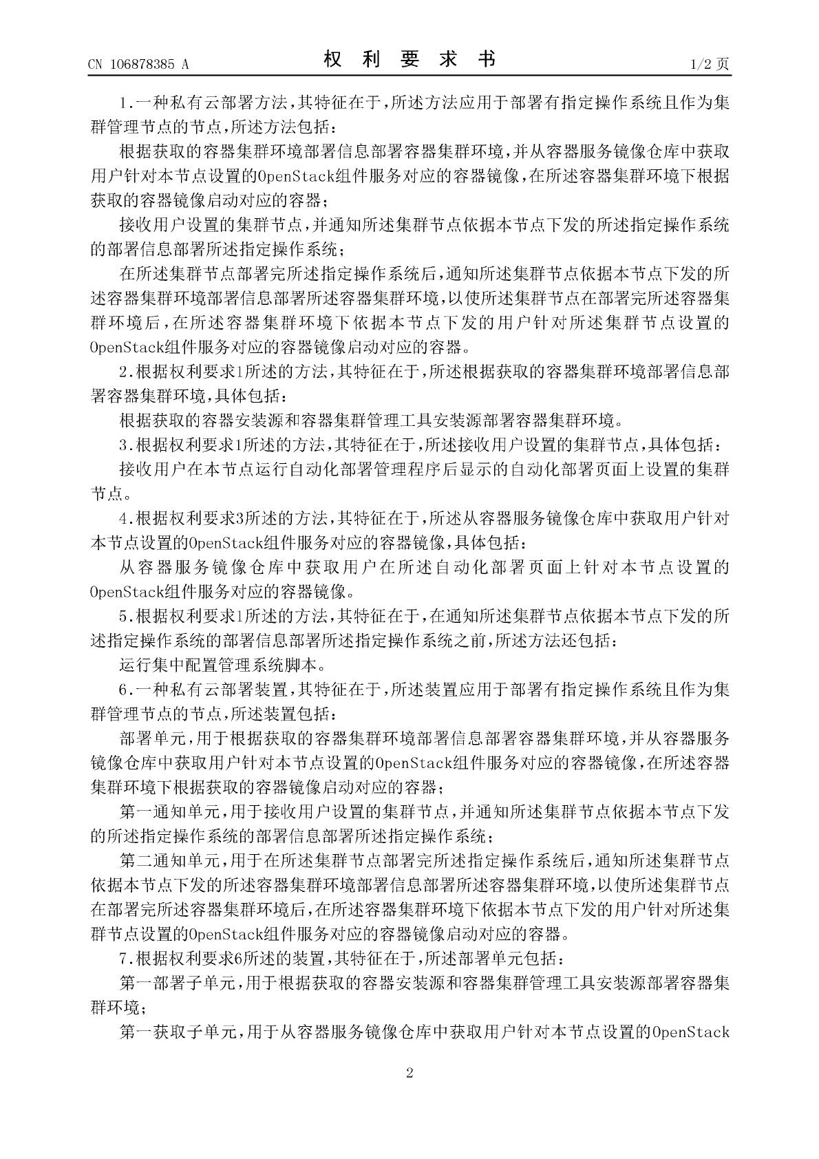 私有云部署方法及装置_CN 106878385 A_王文岩 申博文_新华三.pdf