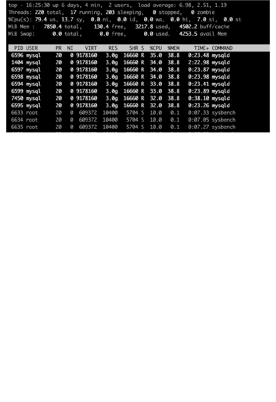 MySQL 干什么的时候,CPU 会 100%?从前文的分析来看,MySQL 主要是两类线程占用 CPU:系统线程和用