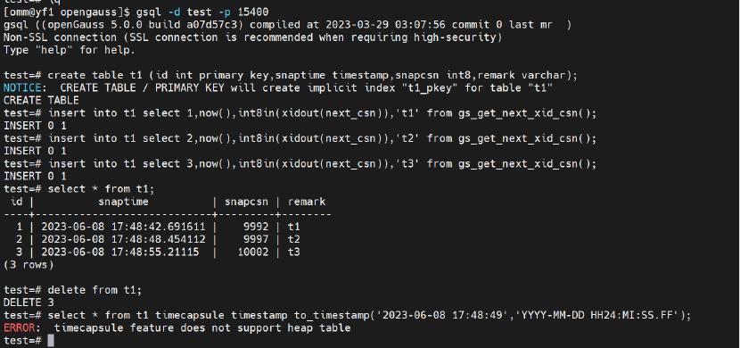 create table t1 (id int primary key,snapme mestamp,snapcsn int8,remark varchar);