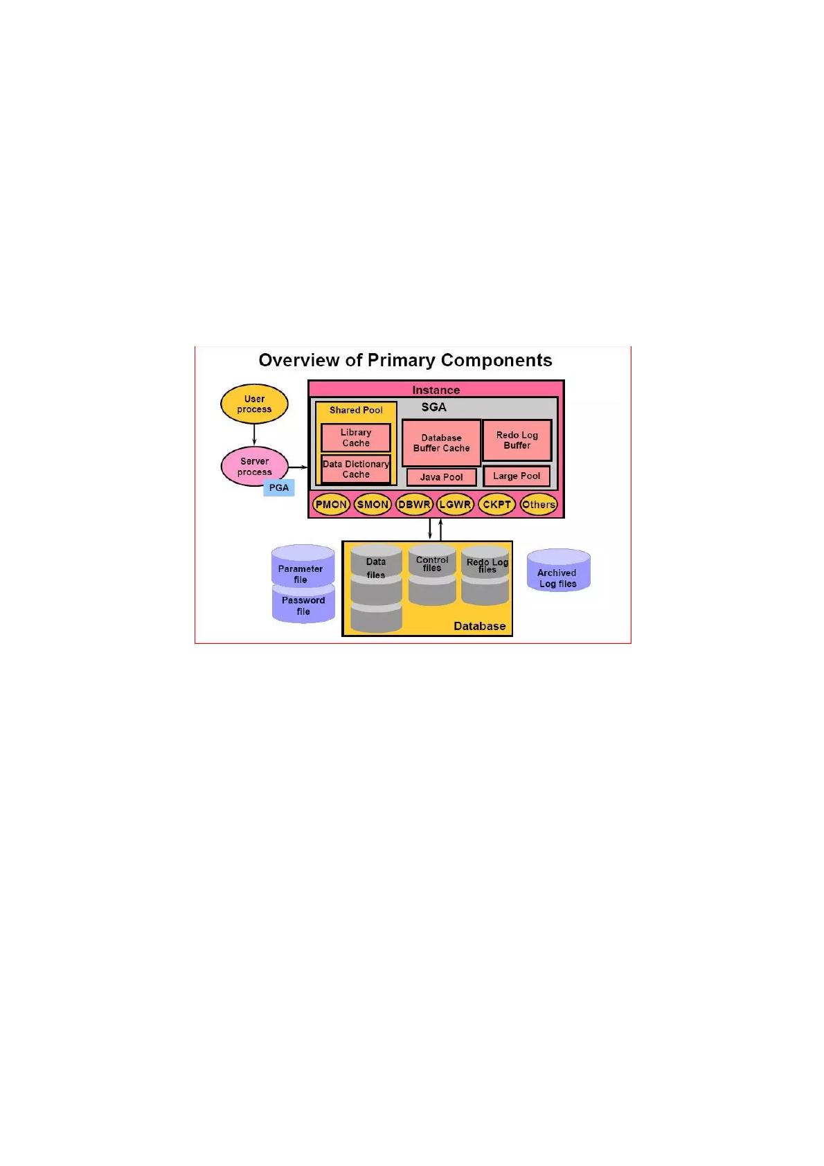 SGA和一些后台服务进程组成,在后台服务进程当中,DBWn PMON CKPT LGWR SMON是必备的后