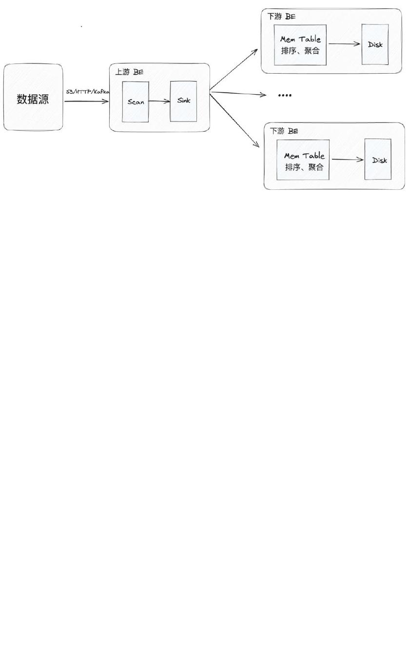 游,其中上游 BE 对数据的处理分为 Scan 和 Sink 两个步骤:首先
