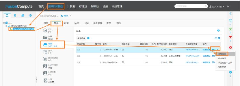 磁盘所属的数据存储类型为虚拟化本地硬盘、虚拟化