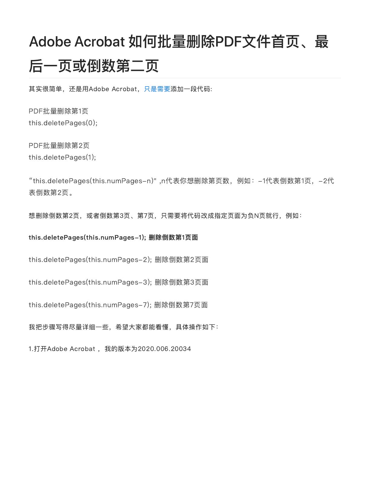 Adobe Acrobat 如何批量删除PDF文件首页、最后一页或倒数第二页.pdf