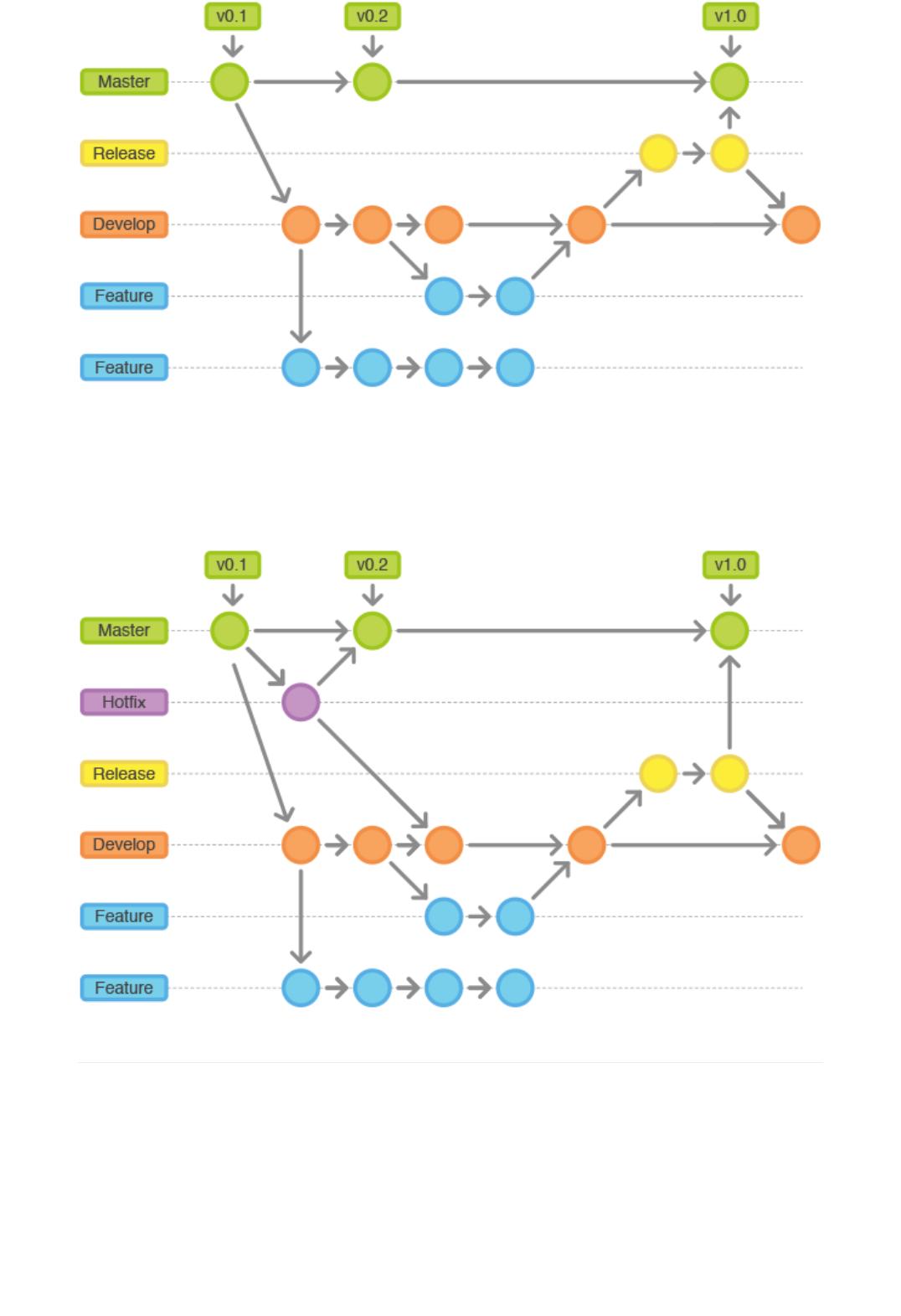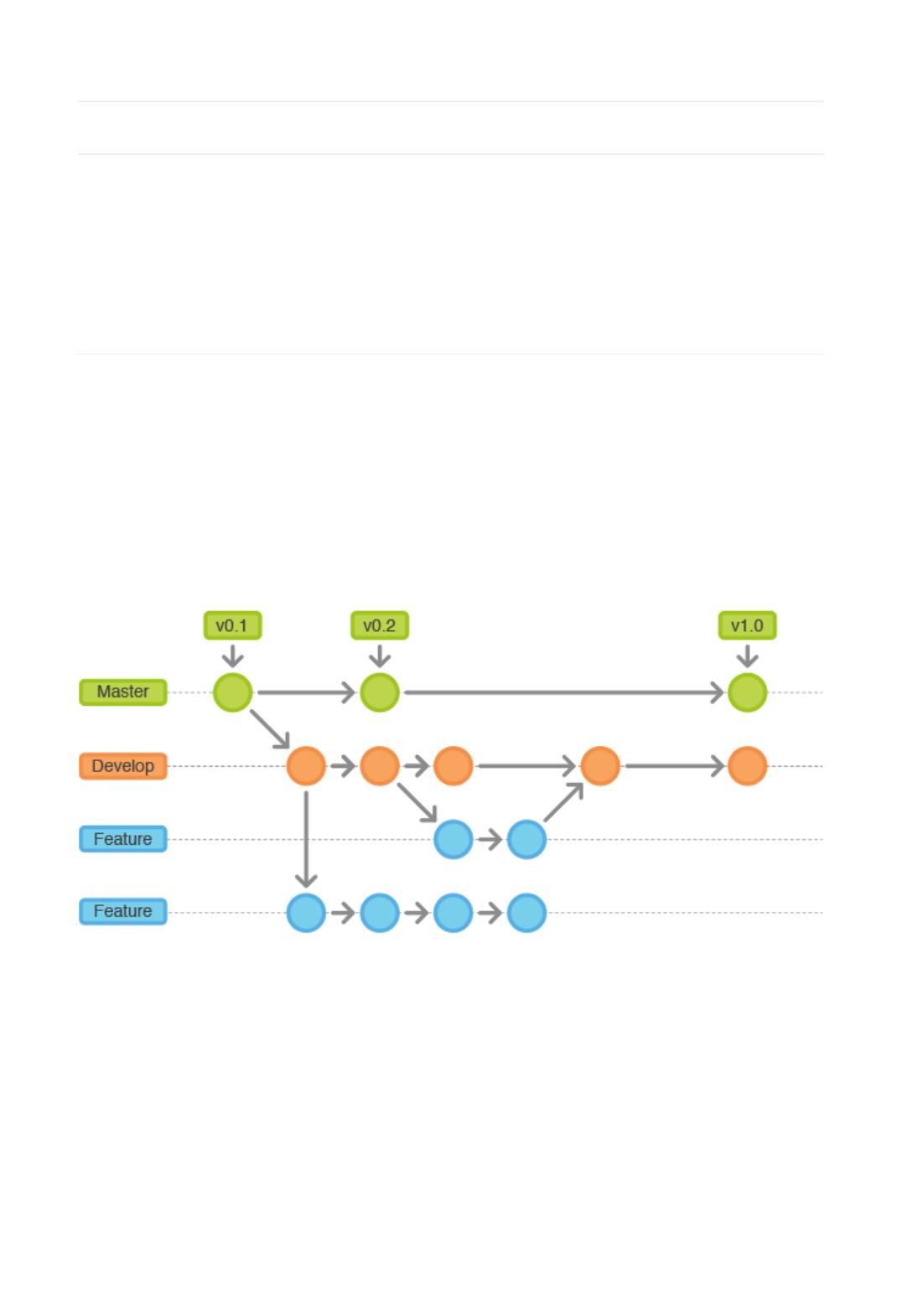 用于功能开发的分支,它还使用独立的分支进行发布前的准备、记录以及后期维护。