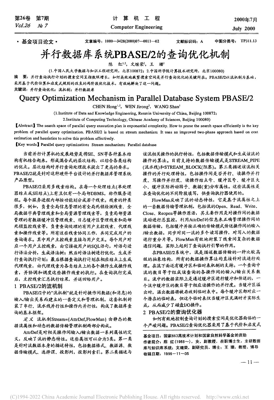并行数据库系统PBASE_2的查询优化机制.pdf