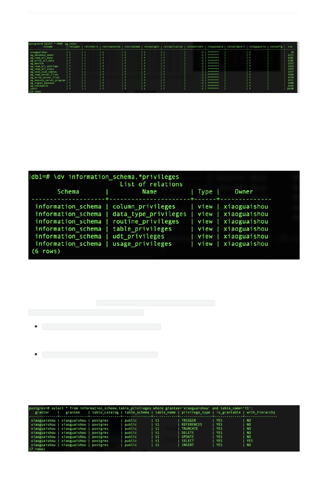 底有着什么权限,有着不同的方式去验证,例如\dp+ , 查询视图,查询函数,或者使用extenson