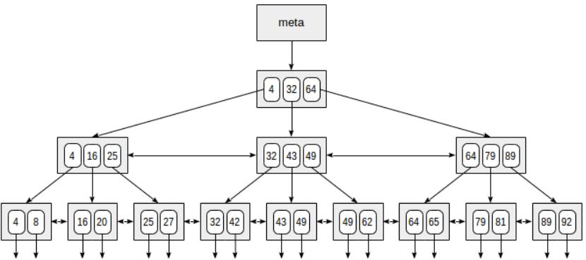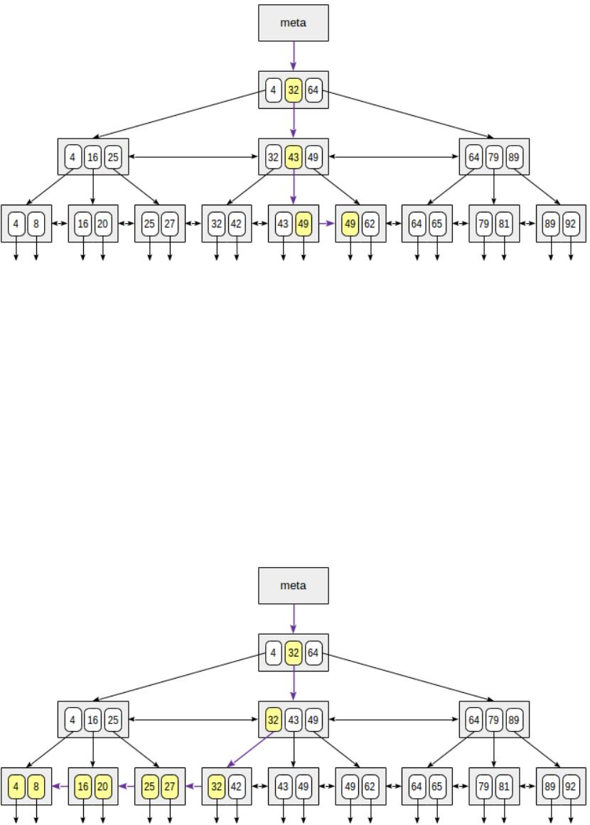 索引中的数据按非递减顺序排序(在页面之间和每个页面内部),并且同一级别的页面通过•