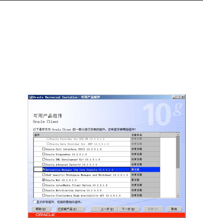独下载。在如图 2-2 所示的选择可用产品组件界面中,Enterprise Manager 10g Java Console 就是指传统的 OEM