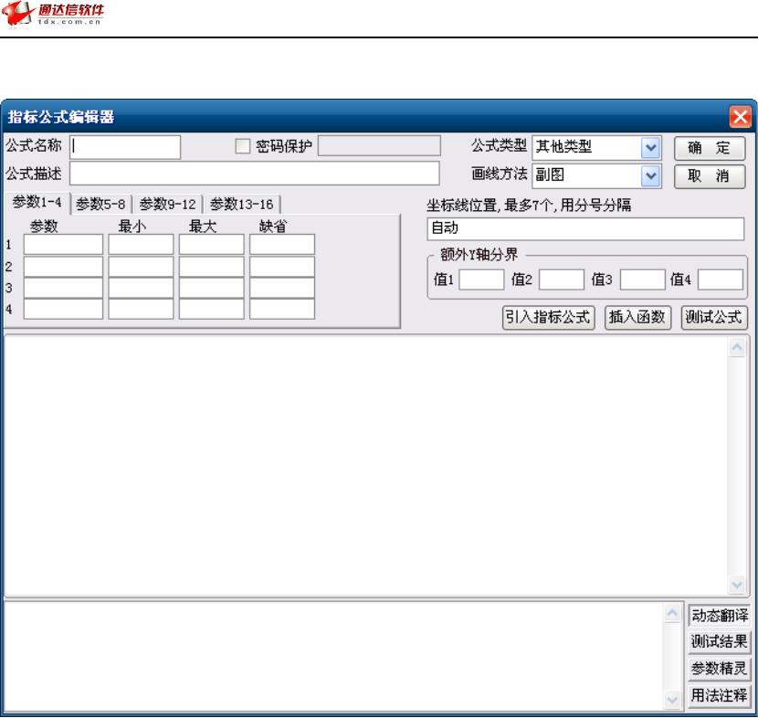 建”就可进入技术指标公式编辑区。如下图: