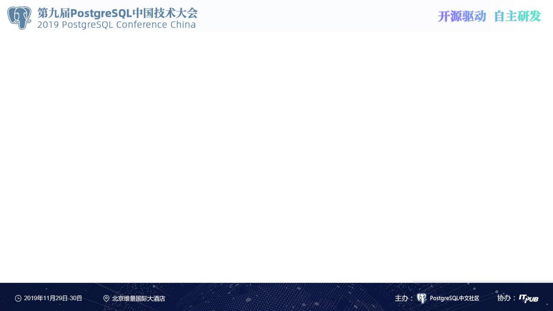 今年是PostgreSQL中国技术大会在中国连续举办的第九年,本次大会以“开源驱动 自主研发”为主题,汇聚了来自互联网、电商、教育,金融等各行业领域的顶尖专家,为大家带来了一场价值非凡的技术盛宴。在过去的9年里,我们共同见证了PostgreSQL在中国的强劲发展,在未来的日子里,让我们一起携手并进,共同推进PostgreSQL在中国持续的、更大的发展。