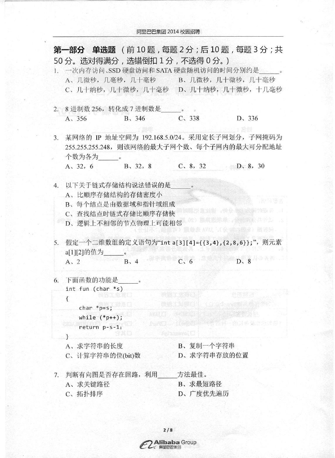 阿里巴巴秋季校园招聘笔试题-测试开发工程师北京卷.pdf