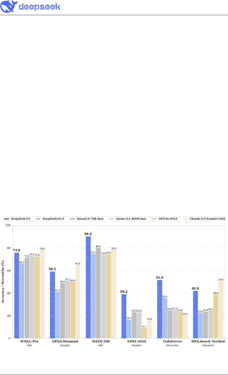 Figure 1 | Benchmark performance of DeepSeek-V3 and its counterparts.