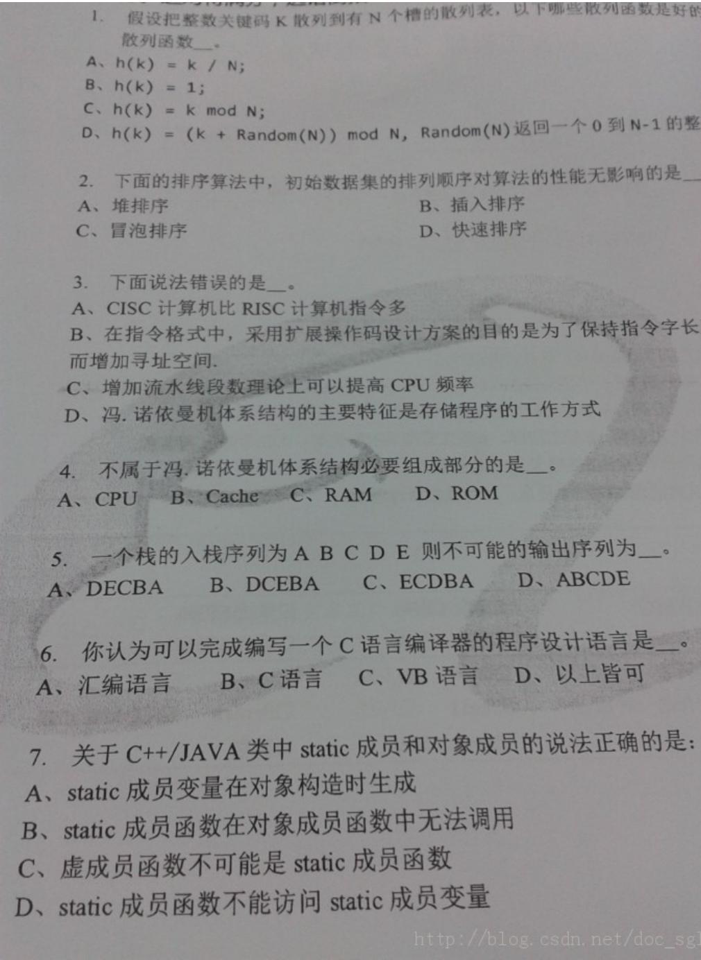 这套题不知道是哪个城市的,也不清楚不同的城市笔试题是不是一样。。。