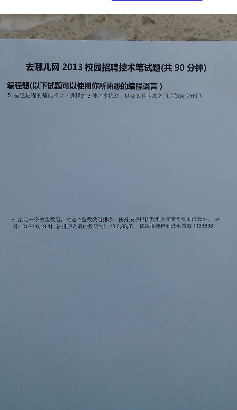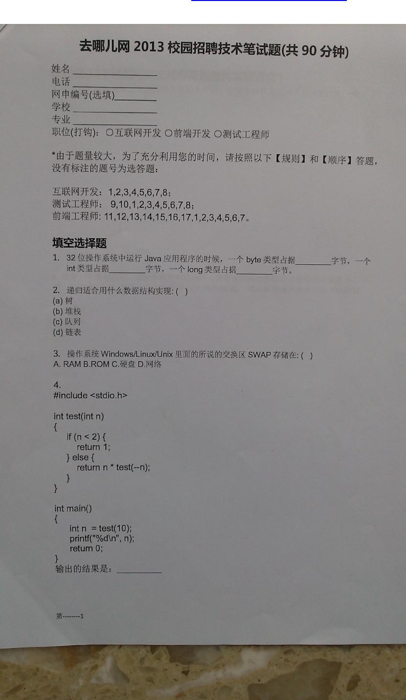 去哪儿网校园招聘笔试试题--技术类.docx