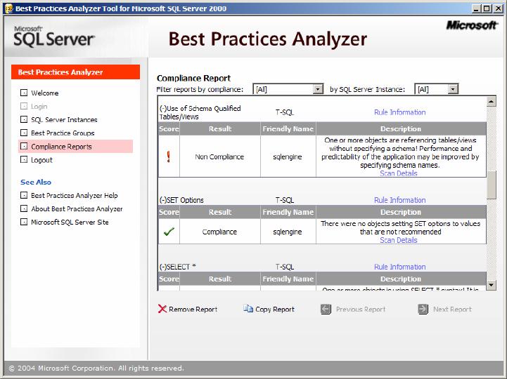 一定的质量要求。SQL BPA 的一个规范遵循报告界面如图 9.42 所示:
