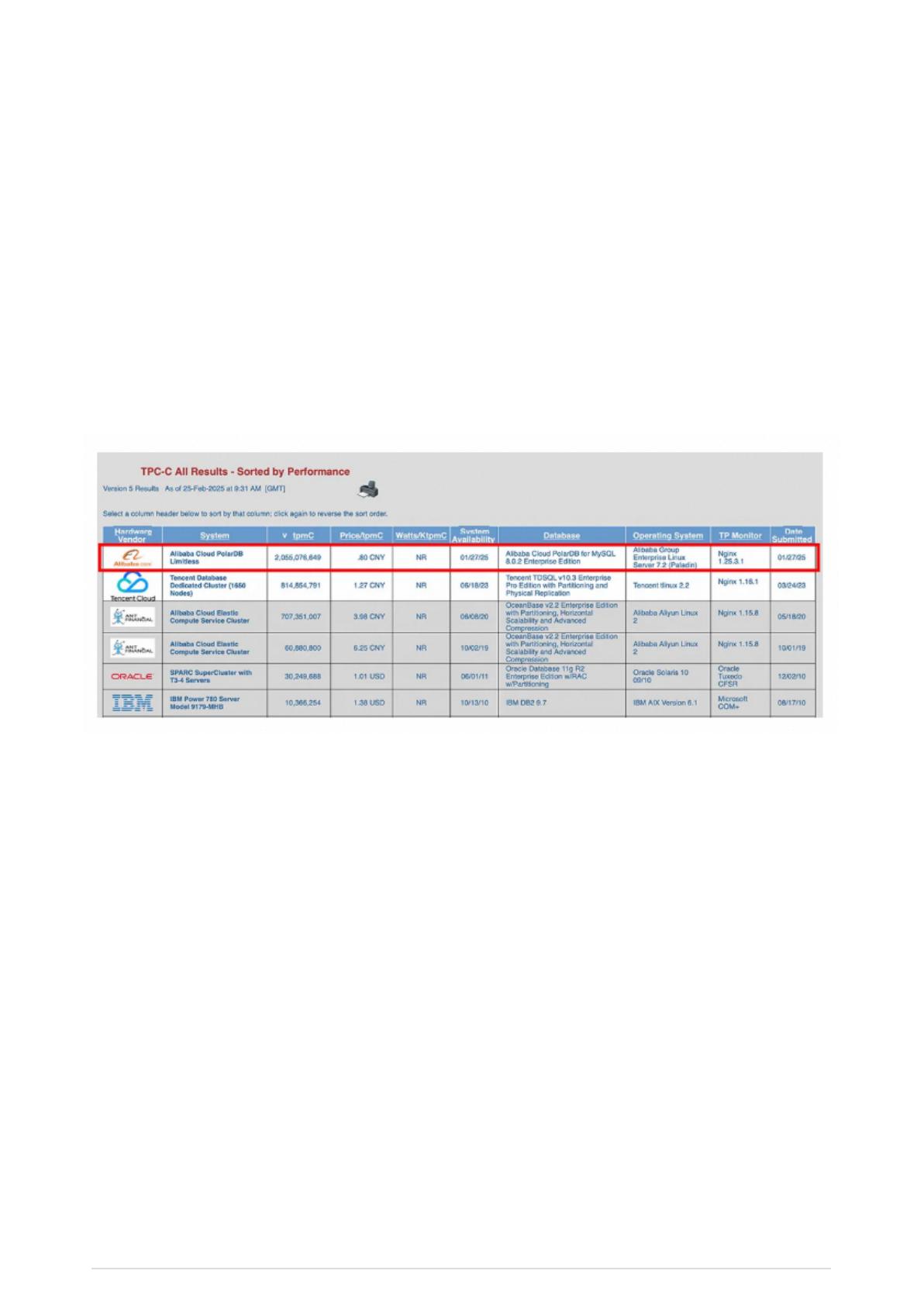 榜,以每分钟20.55亿笔交易(tpmC)和单位成本0.8元⼈⺠币(price/tpmC)的成绩刷新
