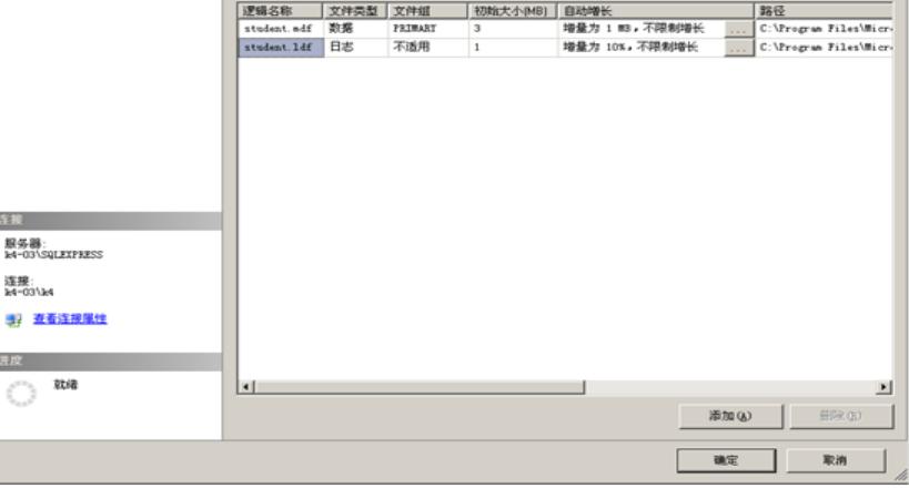 使用图形化界面创建数据库,名称自定,包括一个主数据文件、一