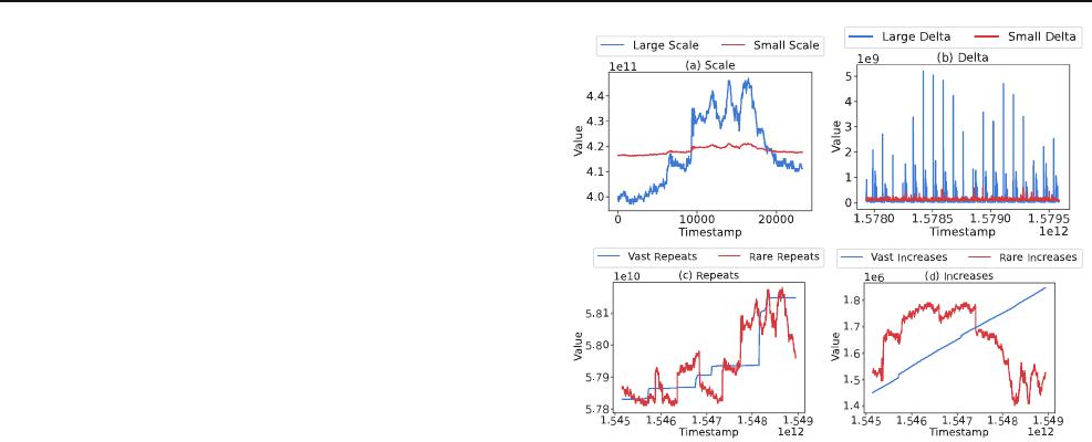 scale, b large/small delta, c vast/rare repeats and d vast/rare increases,