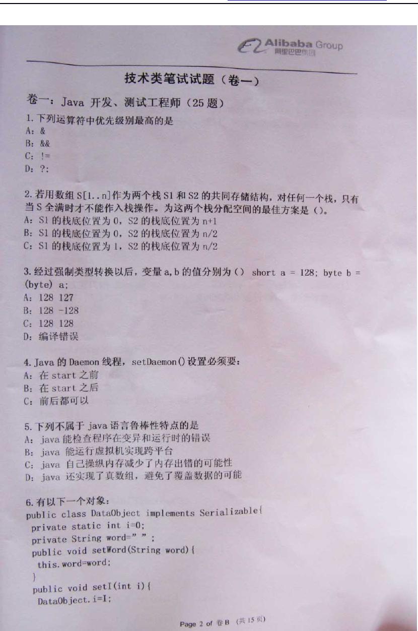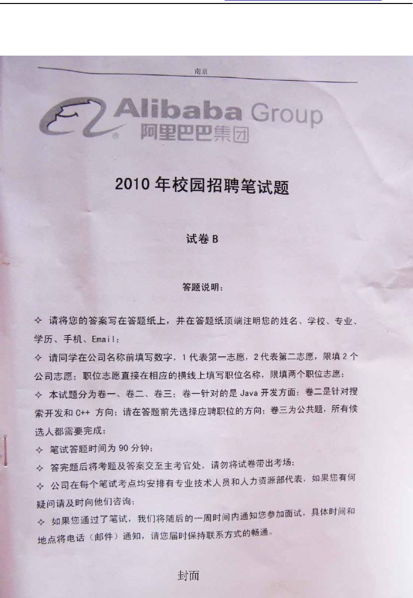 阿里巴巴2010校园招聘技术类笔试试题(Java,搜索研发,C++,测试工程师)南京站.docx