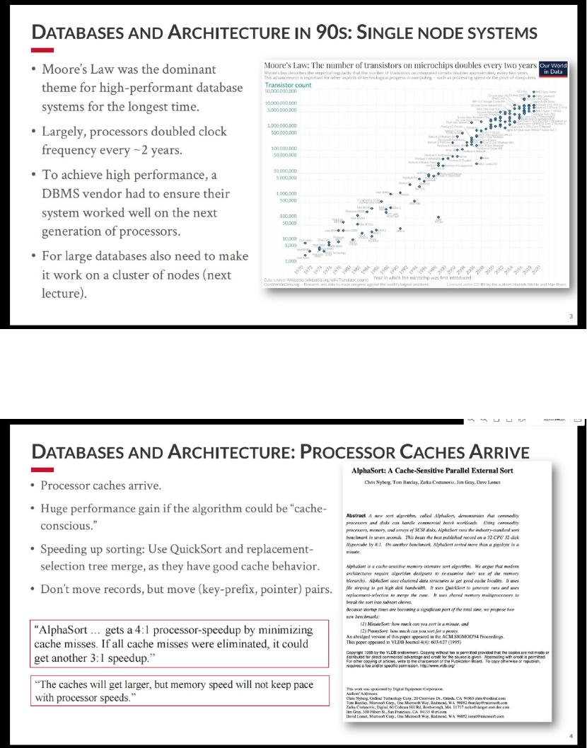)很长一段时间内,摩尔定律都是高性能数据库系统的主旋律,总体来说每隔