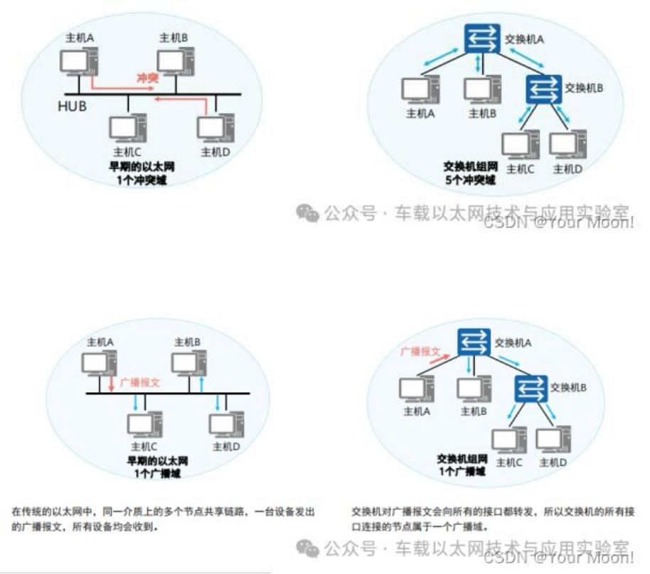 ① 在传统的以太网中,同一介质上的多个节点共享链路带宽,争用链路的使用权,这样就会发生冲