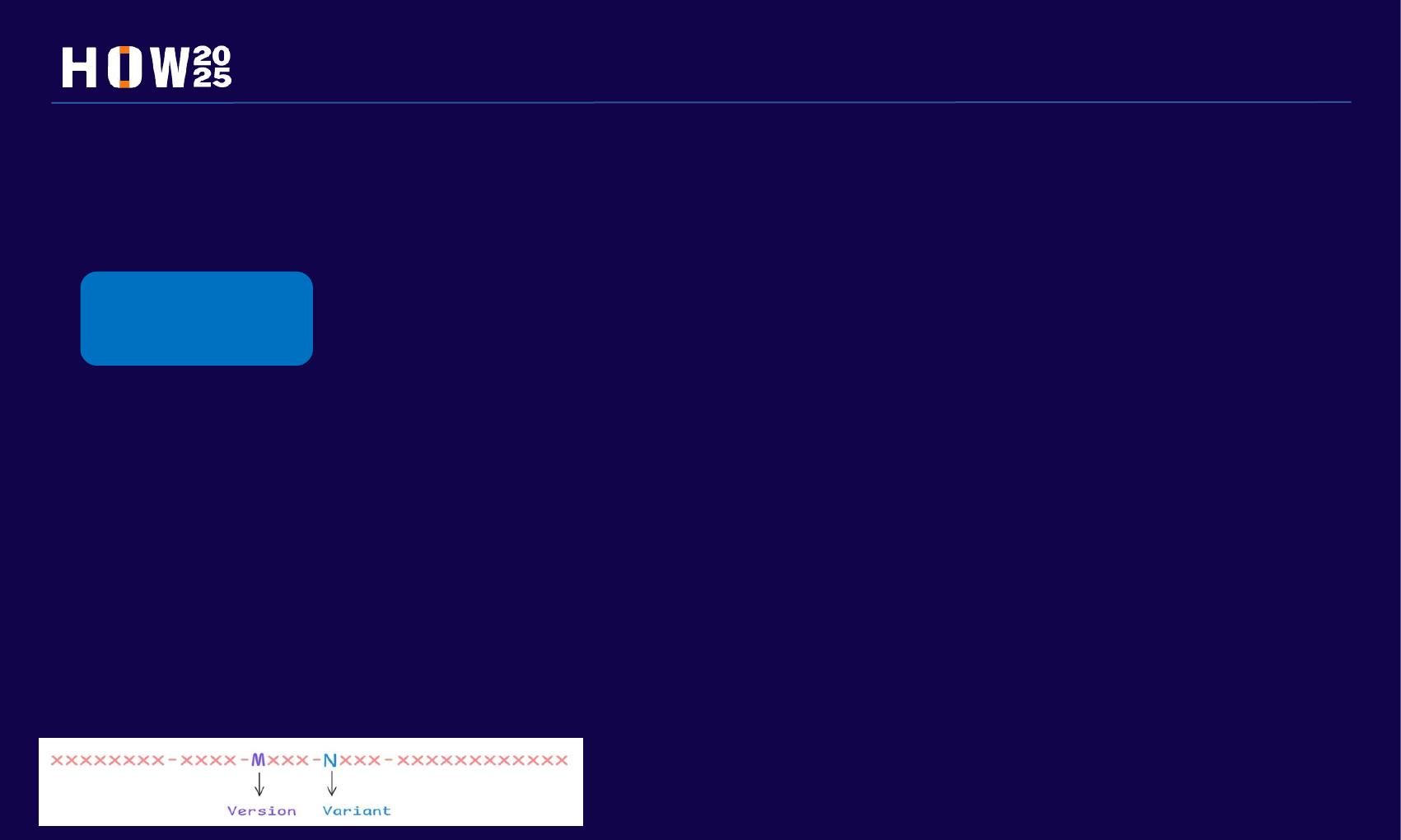 M is the version (e.g., 4 for UUIDv4, 7 for UUIDv7).