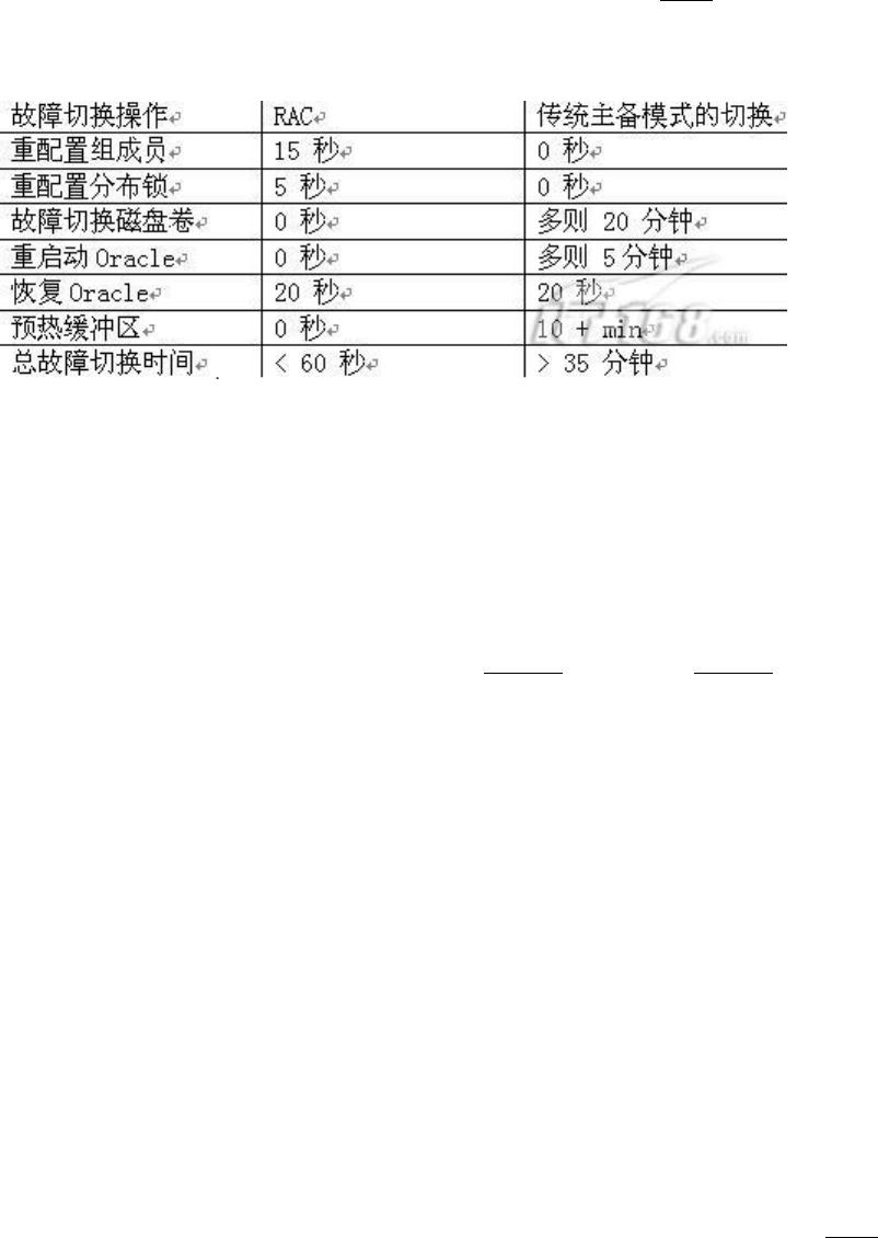 最小化,下表是RAC与传统的双机热备方式切换时间的对比: