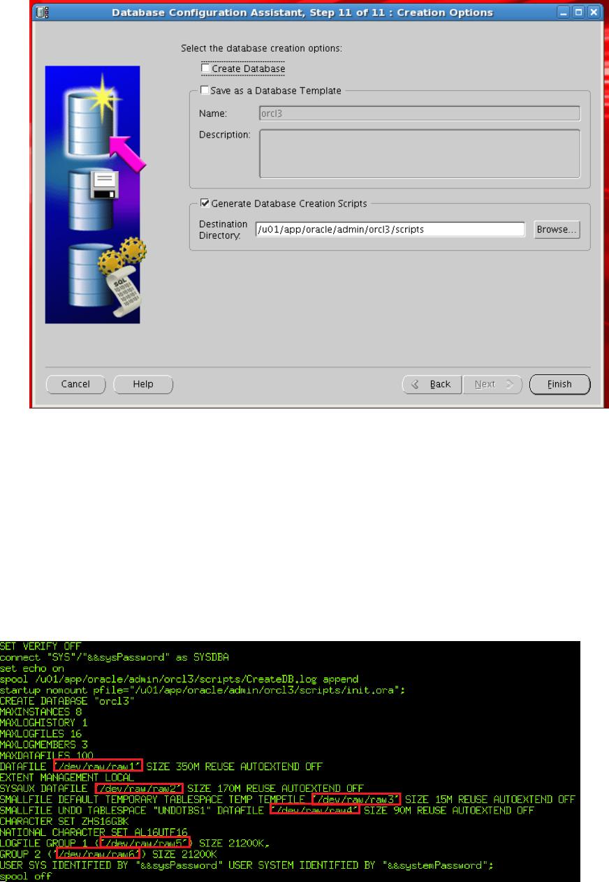 1. 运行 dbca 来创建数据库的脚本,过程与以往 DBCA 创建数据库相同,只是在最后一步只