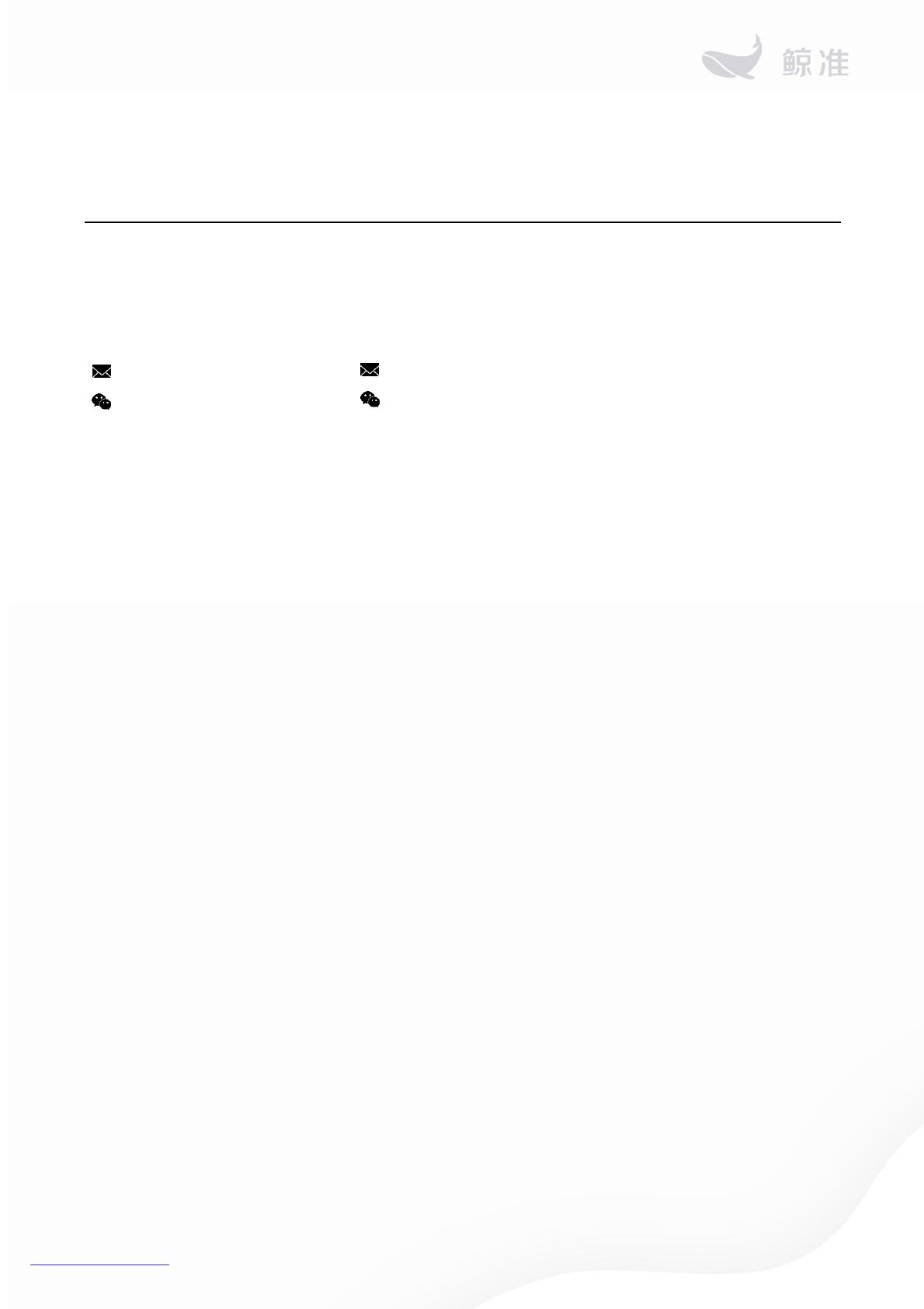 • 鲸准不会因为接收人接受本报告而将其视为客户。本报告仅在相关法律许可的情